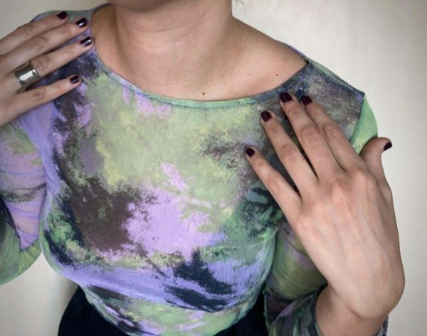 Sobre una superficie plana, coloca una prenda tuya del lado del revés, con características similares. No tiene que estar muy estirada así las medidas son exactas.